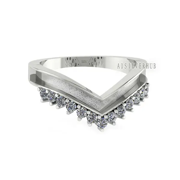 V Shaped Crown CZ Ring